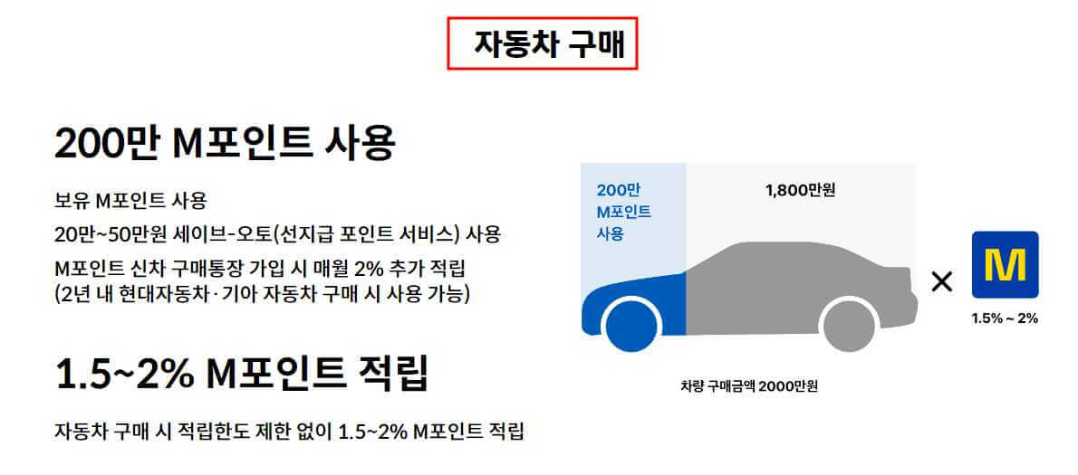 2. 이용 방법 : 차량 구매 시 현대자동차·기아 영업소에서 M포인트 사용 신청