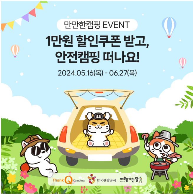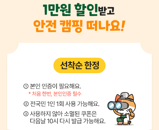 등록된 캠핑장 예약 및 이용 시 1만원 할인